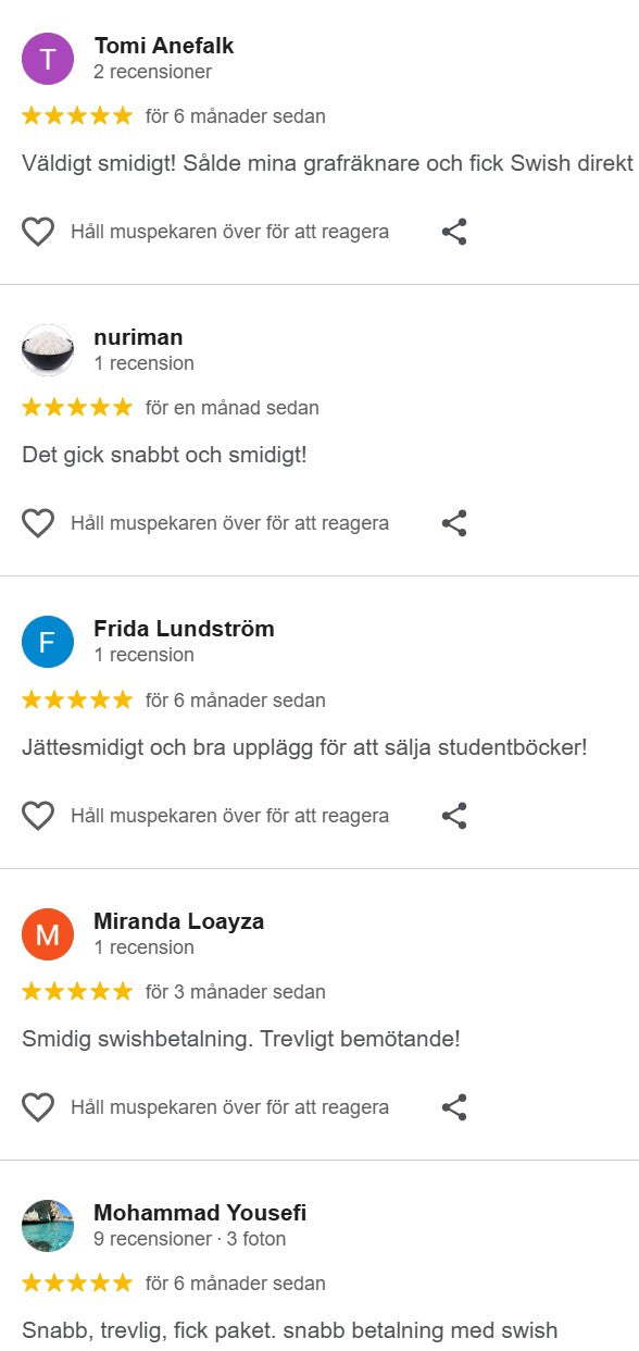 Vi köper begagnade kursböcker och grafritande miniräknare. Utbetalning direkt med Swish